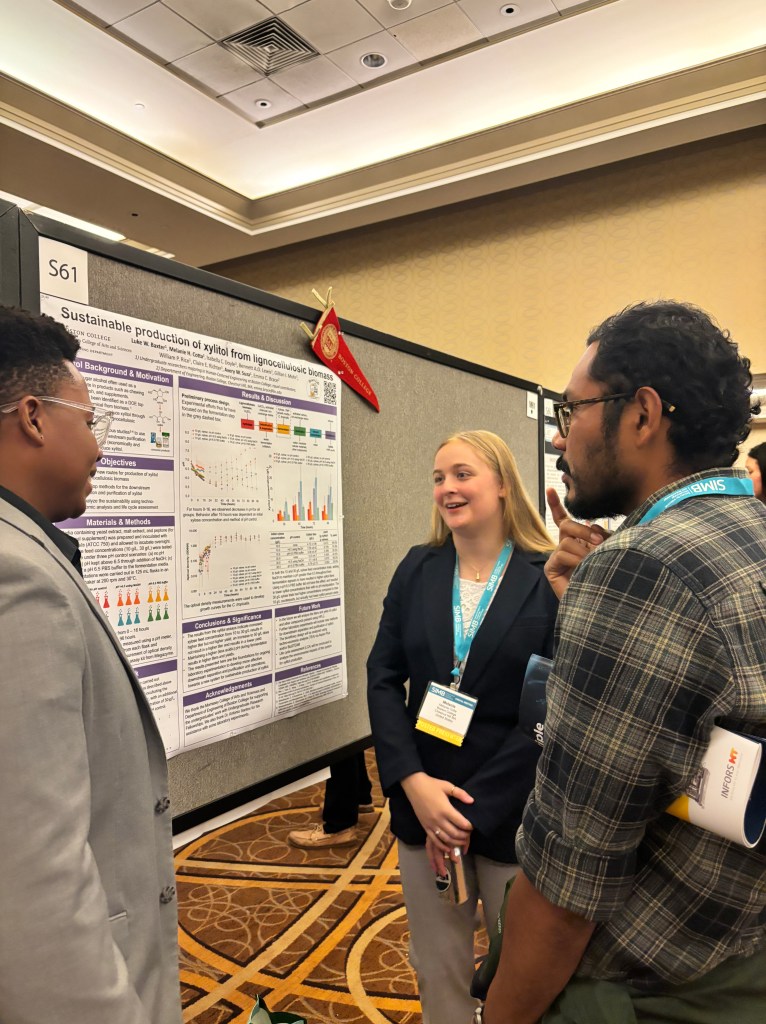 The Society for Industrial Microbiology and Biotechnology (SIMB) Annual Meeting was in Boston this year! That made it an easy choice for me and my summer undergraduate research fellows – Luke, Avery, and Mel – to attend! They had a poster in the Sunday night poster session (S61 in the conference program) sharing the work they’ve done this summer on Sustainable Production of Xylitol from Lignocellulosic Biomass.